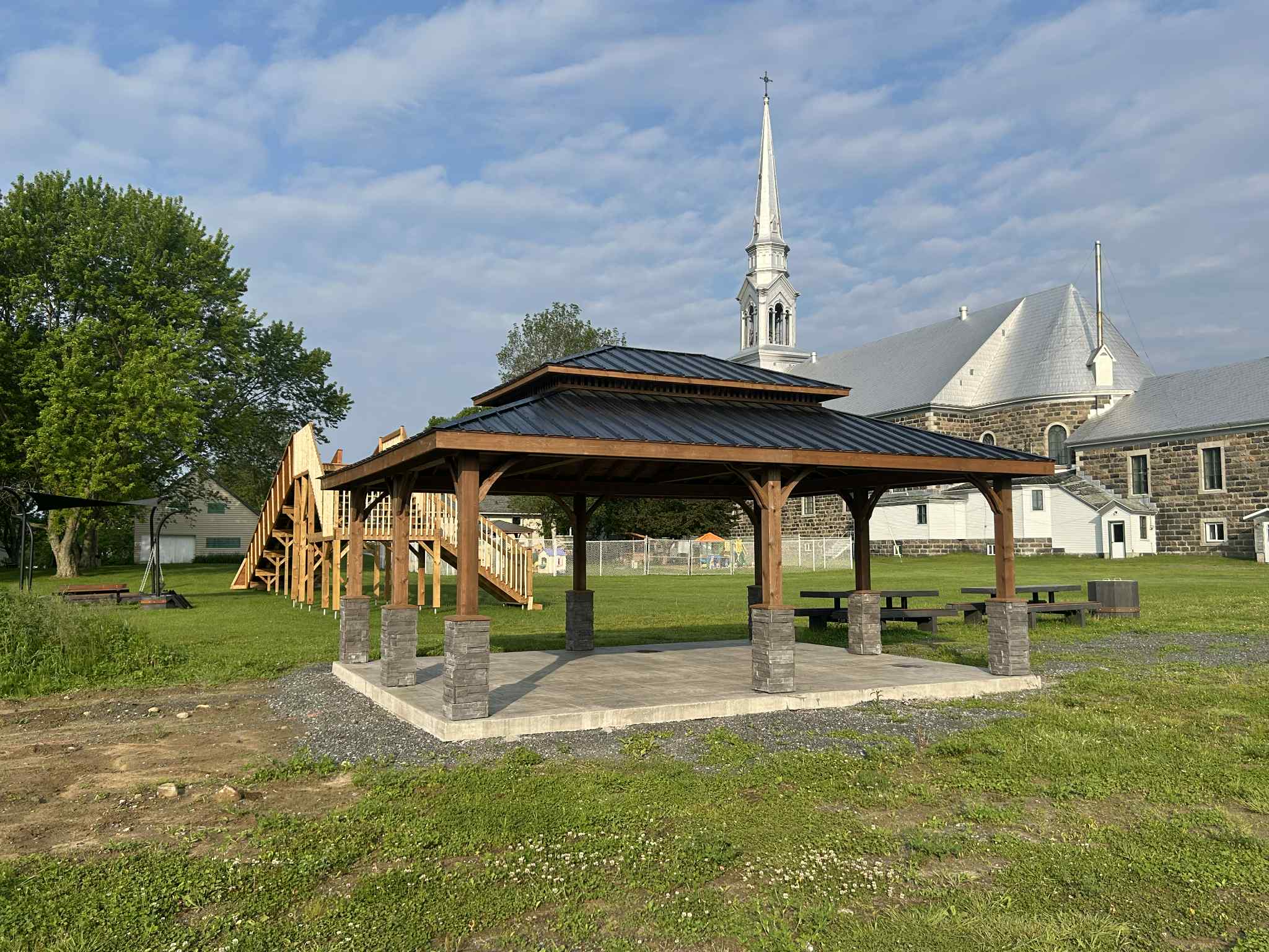 - un gazébo 16x20pi qui abrite 2 grandes tables à pique-nique (2025)